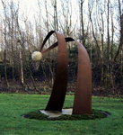 2022Voorstudie voor groter ijzeren object. Gezaagd uit vlakke ijzeren plaat met ei-vorm. Daarna gebogen en gelast.