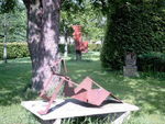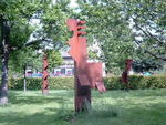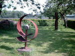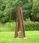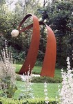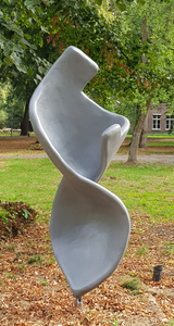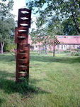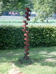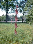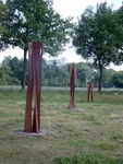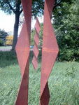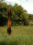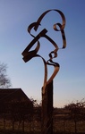 2023Abstract vrouwenfiguur van roestig ijzer. Kleurt mooi inj de naruur. Beweegt door de wind. Daardoor ontstaat steeds een andere vorm en persoectief.