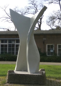 2020Metaal, PURschuim, aluminiumcement, buitenstuc. De Zusters van Liefde hebben het Anna te Venray terrein na bijna een eeuw verlaten. Hun 'Mantel der Liefde' is achtergebleven. Gemaakt door Ton Jeuken en Guus Seibert.